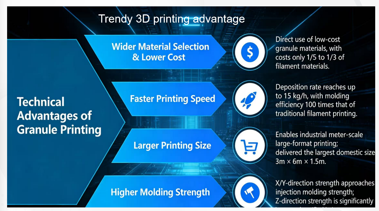 Maximum printable size: 3000 × 2000 × 1200 mm—for true one-piece production of large parts